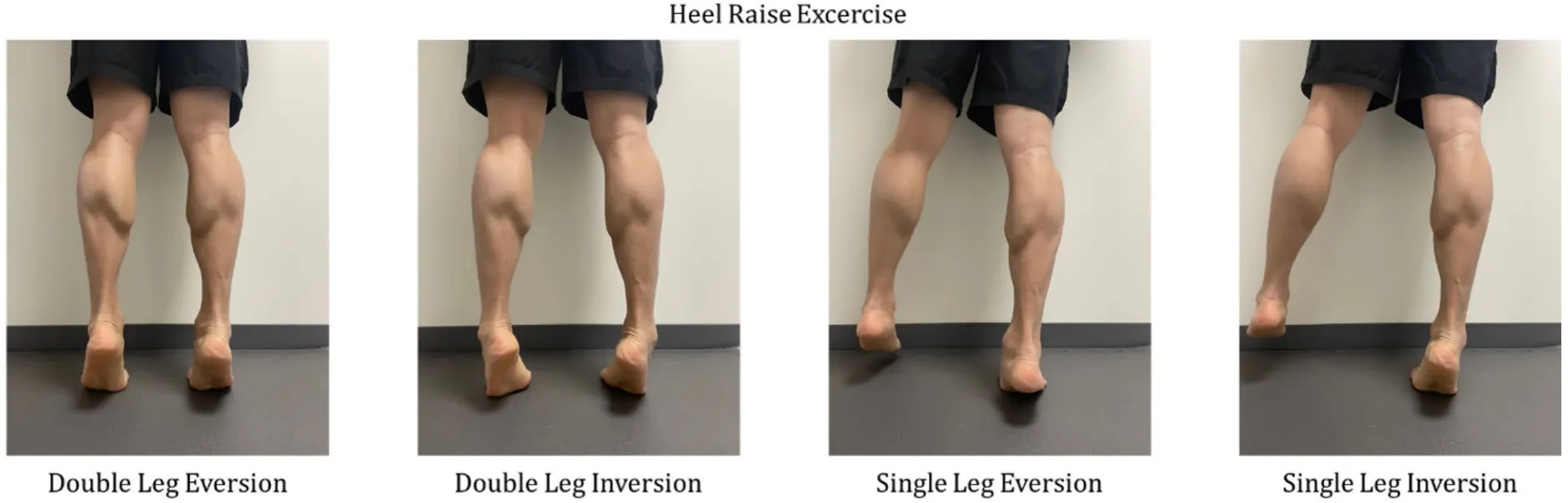 此外,另一項研究 指出,進行腳跟舉動作時,踝關節的不同方向(內翻 inversion 或 外翻 eversion)會顯著影響肌肉的招募: