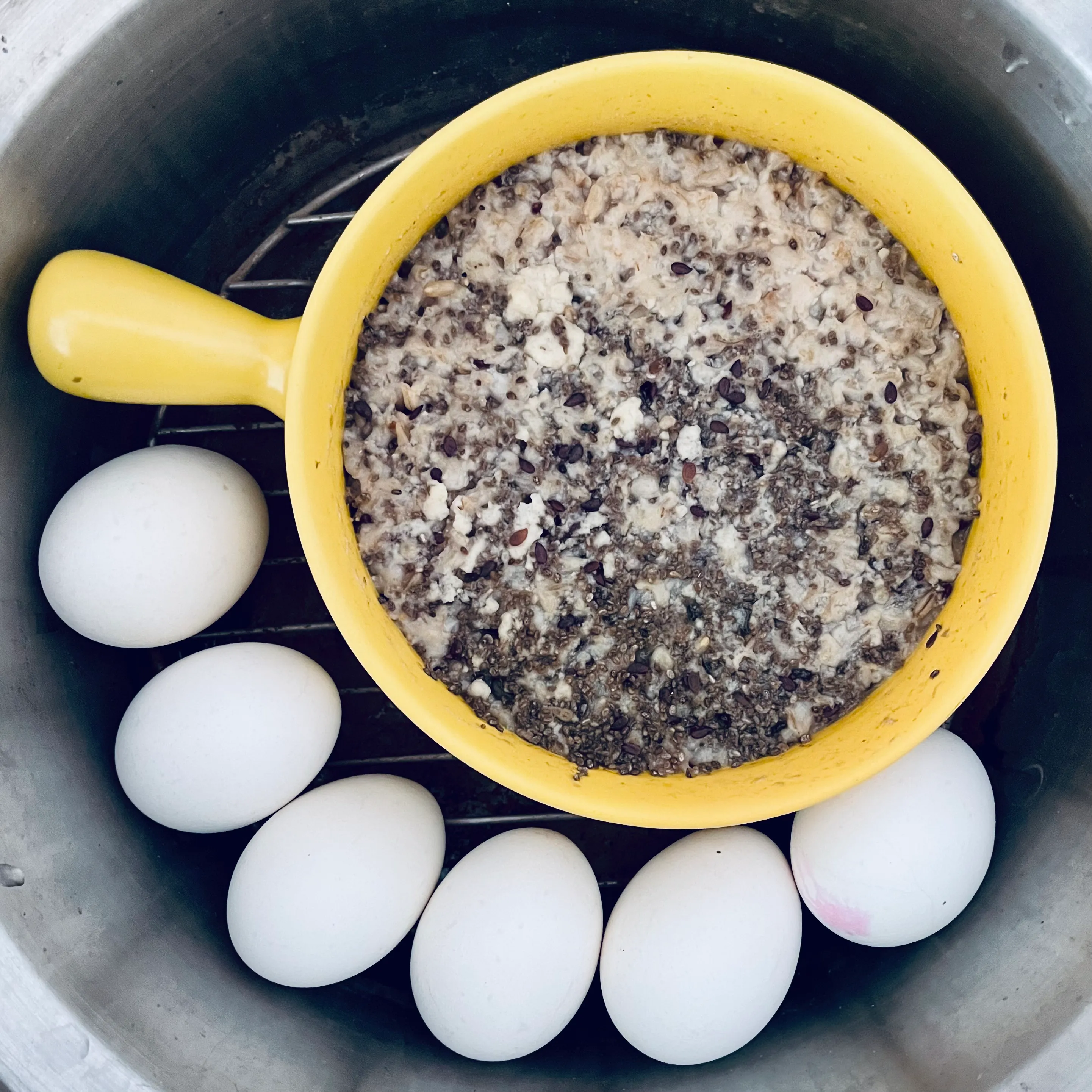 最後剩下兩顆蛋躺在電鍋裡,孤單地涼掉。