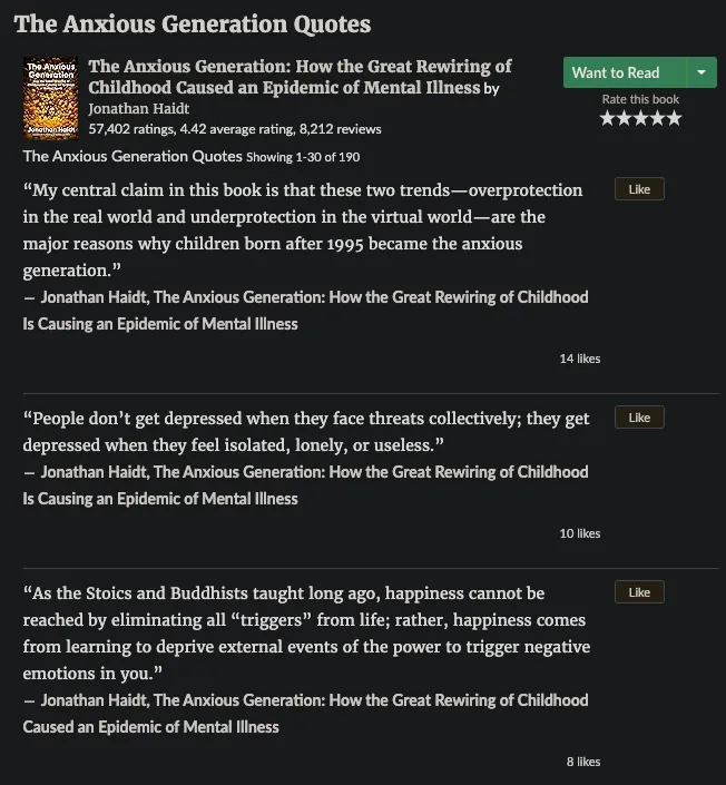 以美國社會心理學家 Jonathan Haidt 的著作《失控的焦慮世代》(The Anxious Generation)為例: