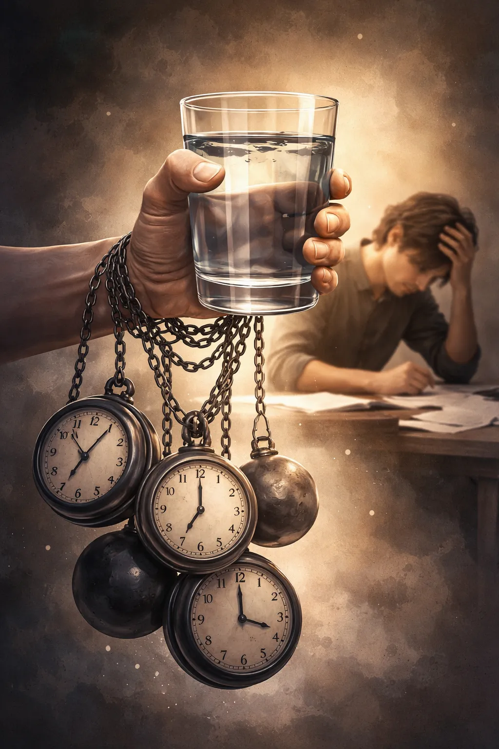 教授回答:「這杯水的重量並不重要,重點是我拿著它多久。」