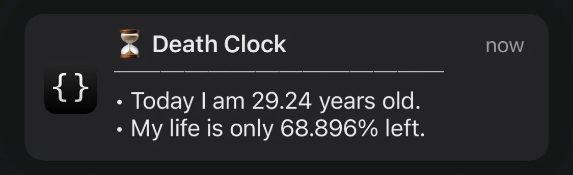 The Death Clock reminds me that every single second I’m dying. It internalizes the certainty of death, rewiring my brain to prioritize what I might regret on my deathbed. It’s not the number that is the most important, but seeing the number changing day after day that makes the difference.