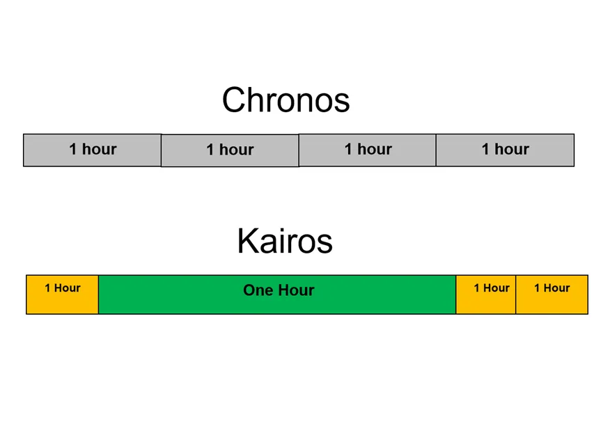 - Try thinking about your time in a day in terms of Kairos, not Chronos.